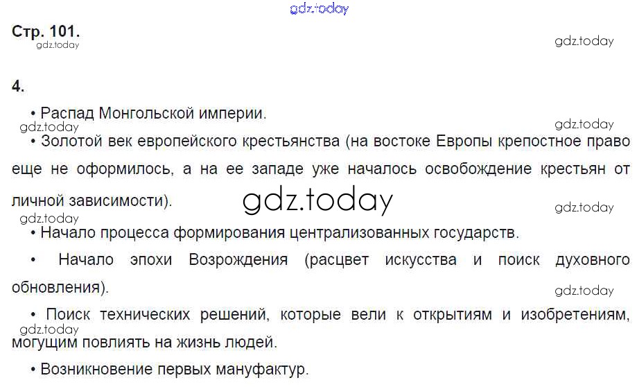 На страницах сайта gdz.today вы найдете учебный и вспомогательный материал, направленный на улучшения знаний школьной программы. ГДЗ - онлайн мир знаний Решение к §23 стр. 101 Рабочей тетради по Истории России для 6 класса Артасов, Данилов Просвещение 2016