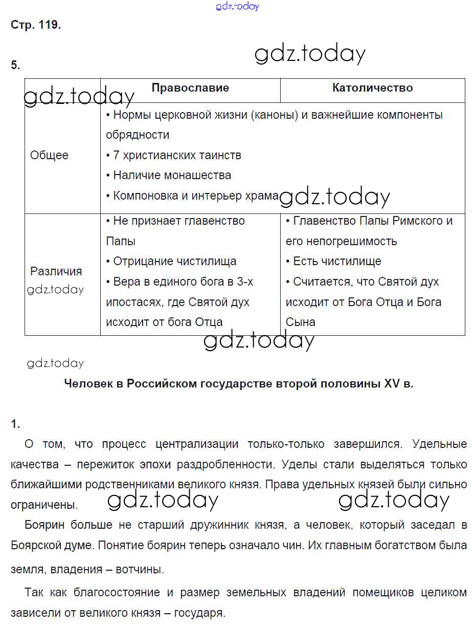 На страницах сайта gdz.today вы найдете учебный и вспомогательный материал, направленный на улучшения знаний школьной программы. ГДЗ - онлайн мир знаний Решение к §26 стр. 119 Рабочей тетради по Истории России для 6 класса Артасов, Данилов Просвещение 2016