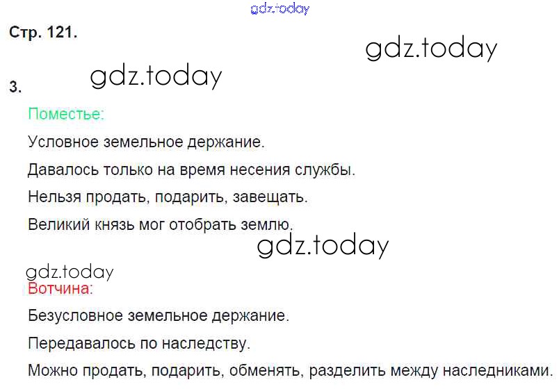 На страницах сайта gdz.today вы найдете учебный и вспомогательный материал, направленный на улучшения знаний школьной программы. ГДЗ - онлайн мир знаний Решение к §26 стр. 121 Рабочей тетради по Истории России для 6 класса Артасов, Данилов Просвещение 2016