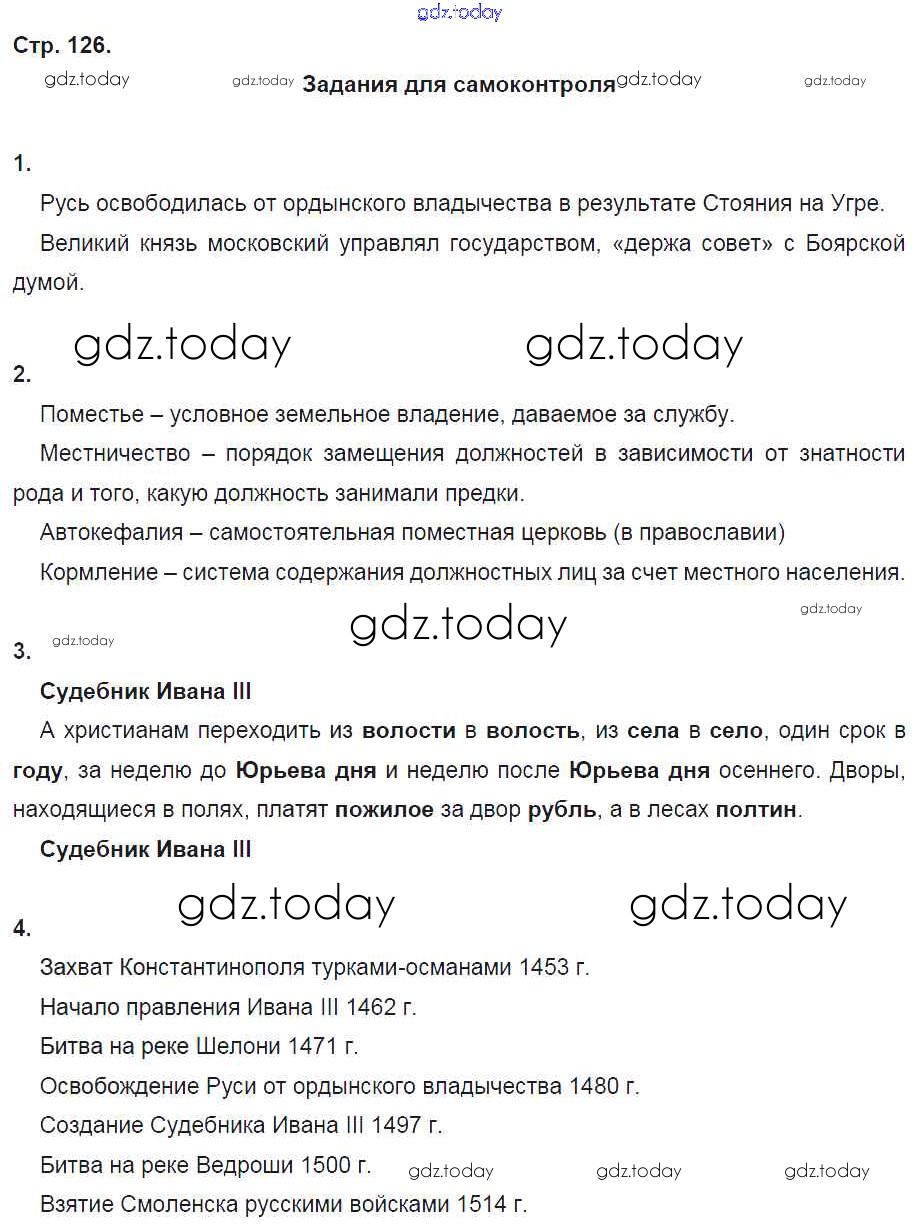 На страницах сайта gdz.today вы найдете учебный и вспомогательный материал, направленный на улучшения знаний школьной программы. ГДЗ - онлайн мир знаний Решение к §27 стр. 126 Рабочей тетради по Истории России для 6 класса Артасов, Данилов Просвещение 2016