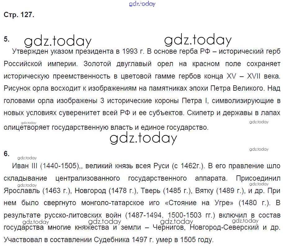 На страницах сайта gdz.today вы найдете учебный и вспомогательный материал, направленный на улучшения знаний школьной программы. ГДЗ - онлайн мир знаний Решение к §27 стр. 127 Рабочей тетради по Истории России для 6 класса Артасов, Данилов Просвещение 2016