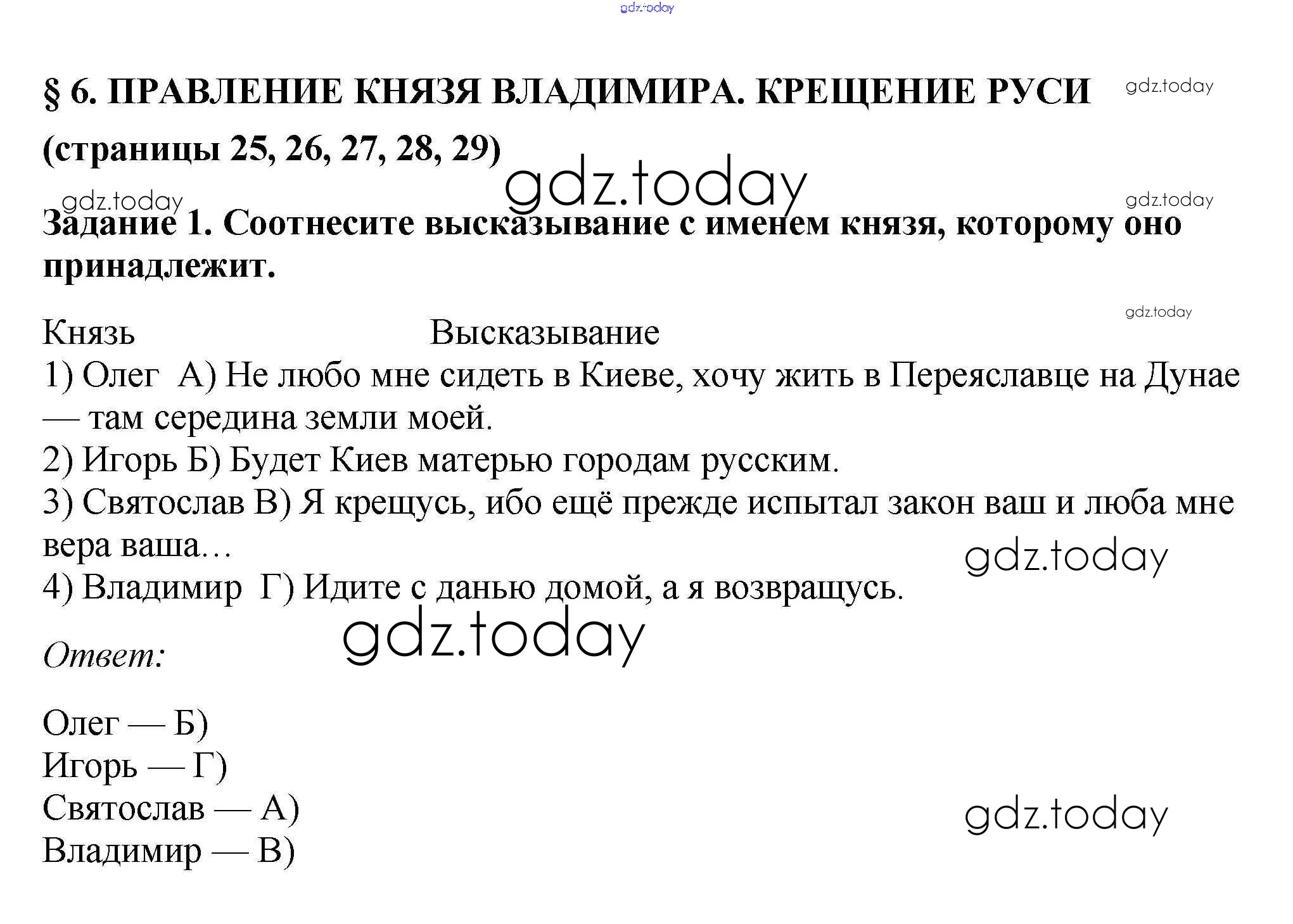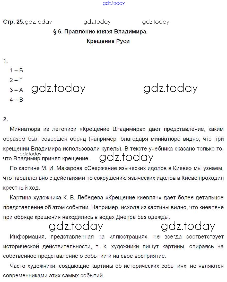 На страницах сайта gdz.today вы найдете учебный и вспомогательный материал, направленный на улучшения знаний школьной программы. ГДЗ - онлайн мир знаний Решение к §6 стр. 25 Рабочей тетради по Истории России для 6 класса Артасов, Данилов Просвещение 2016