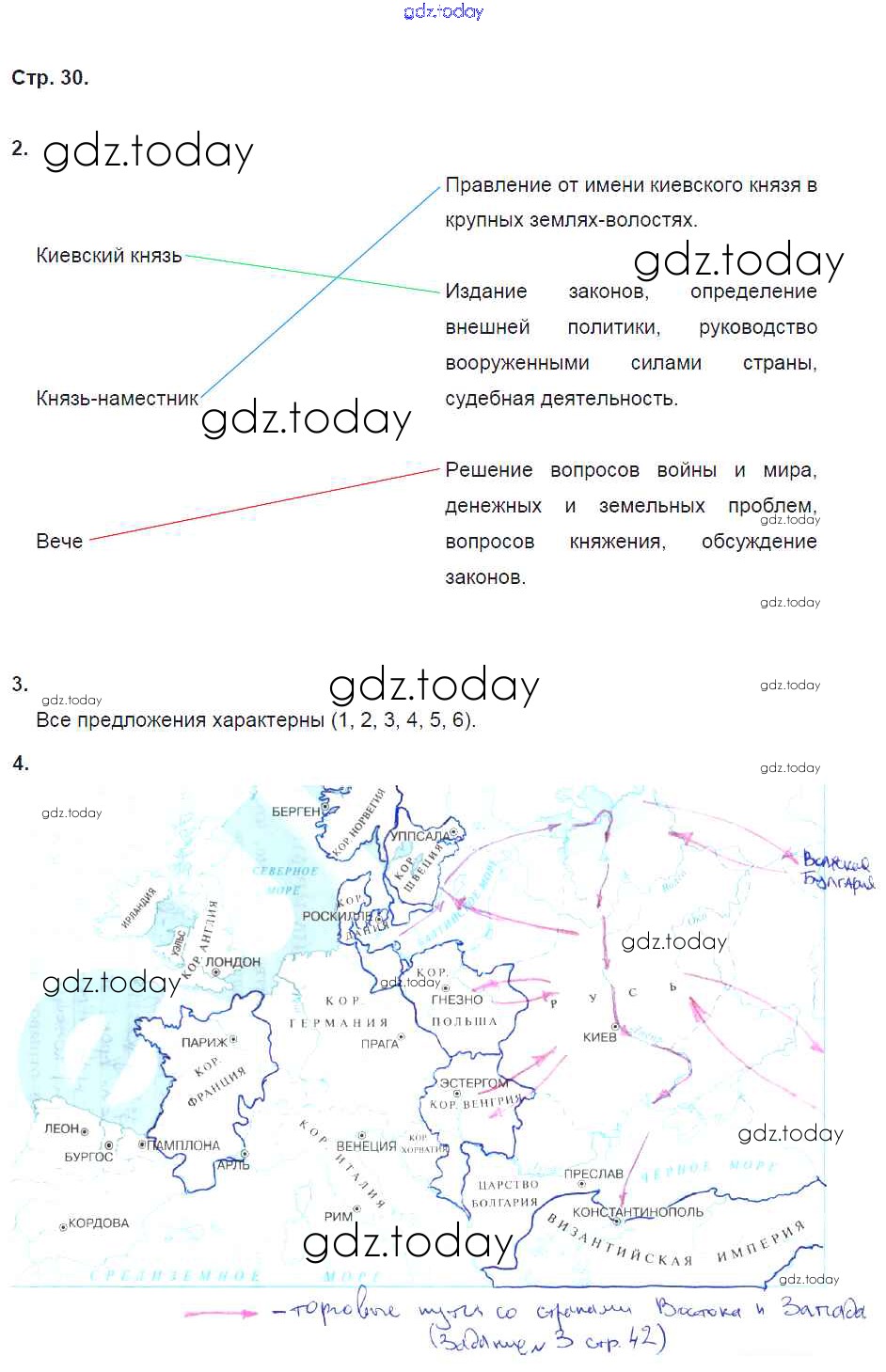 На страницах сайта gdz.today вы найдете учебный и вспомогательный материал, направленный на улучшения знаний школьной программы. ГДЗ - онлайн мир знаний Решение к §7 стр. 30 Рабочей тетради по Истории России для 6 класса Артасов, Данилов Просвещение 2016