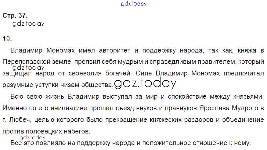 На страницах сайта gdz.today вы найдете учебный и вспомогательный материал, направленный на улучшения знаний школьной программы. ГДЗ - онлайн мир знаний Решение к §8 стр. 37 Рабочей тетради по Истории России для 6 класса Артасов, Данилов Просвещение 2016