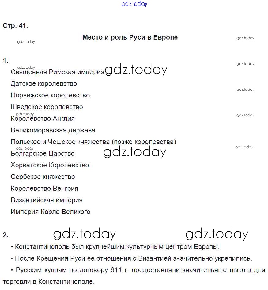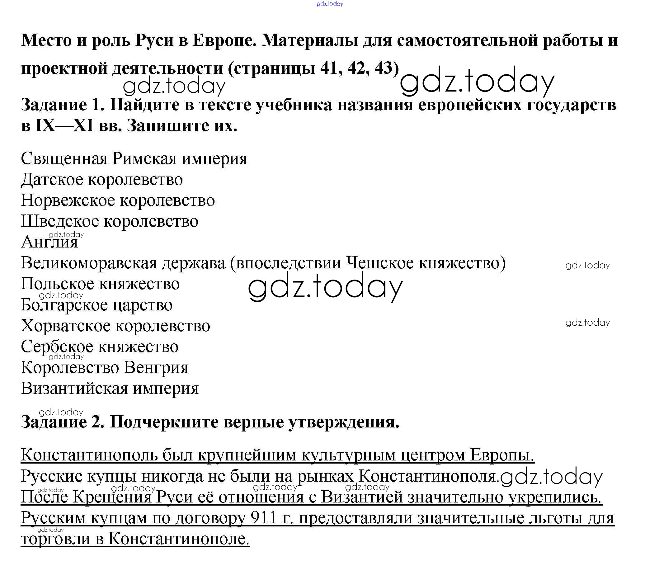 На страницах сайта gdz.today вы найдете учебный и вспомогательный материал, направленный на улучшения знаний школьной программы. ГДЗ - онлайн мир знаний Решение к §9 стр. 41 Рабочей тетради по Истории России для 6 класса Артасов, Данилов Просвещение 2016