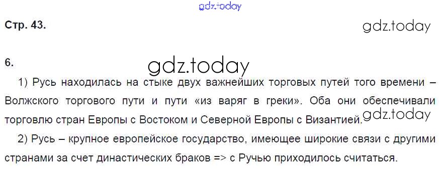 На страницах сайта gdz.today вы найдете учебный и вспомогательный материал, направленный на улучшения знаний школьной программы. ГДЗ - онлайн мир знаний Решение к §9 стр. 43 Рабочей тетради по Истории России для 6 класса Артасов, Данилов Просвещение 2016