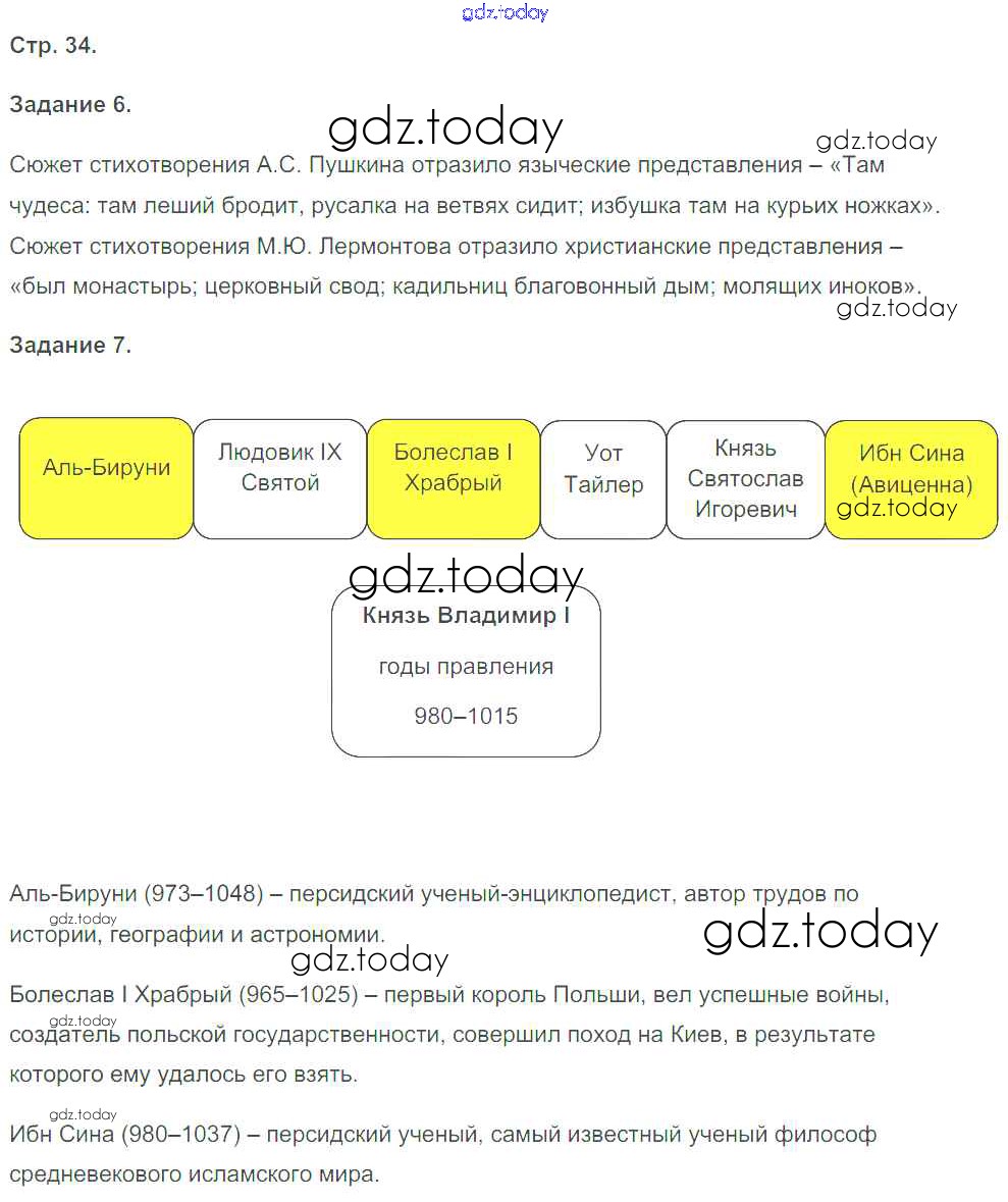 На страницах сайта gdz.today вы найдете учебный и вспомогательный материал, направленный на улучшения знаний школьной программы. ГДЗ - онлайн мир знаний Решение к части 1. Страницы 34 Рабочей тетради по Истории России для 6 класса Чернова Экзамен УМК 2017