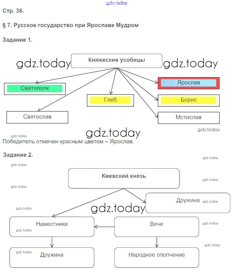 На страницах сайта gdz.today вы найдете учебный и вспомогательный материал, направленный на улучшения знаний школьной программы. ГДЗ - онлайн мир знаний Решение к части 1. Страницы 36 Рабочей тетради по Истории России для 6 класса Чернова Экзамен УМК 2017