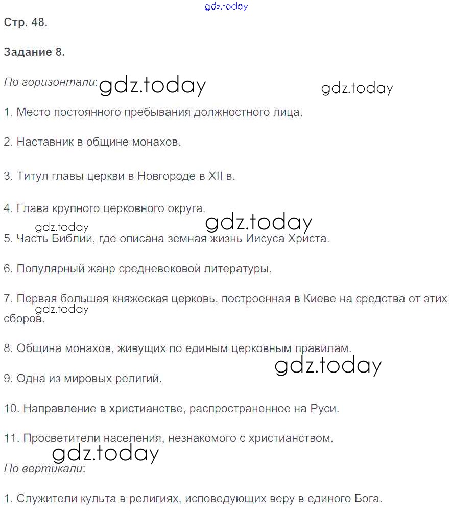 На страницах сайта gdz.today вы найдете учебный и вспомогательный материал, направленный на улучшения знаний школьной программы. ГДЗ - онлайн мир знаний Решение к части 1. Страницы 48 Рабочей тетради по Истории России для 6 класса Чернова Экзамен УМК 2017