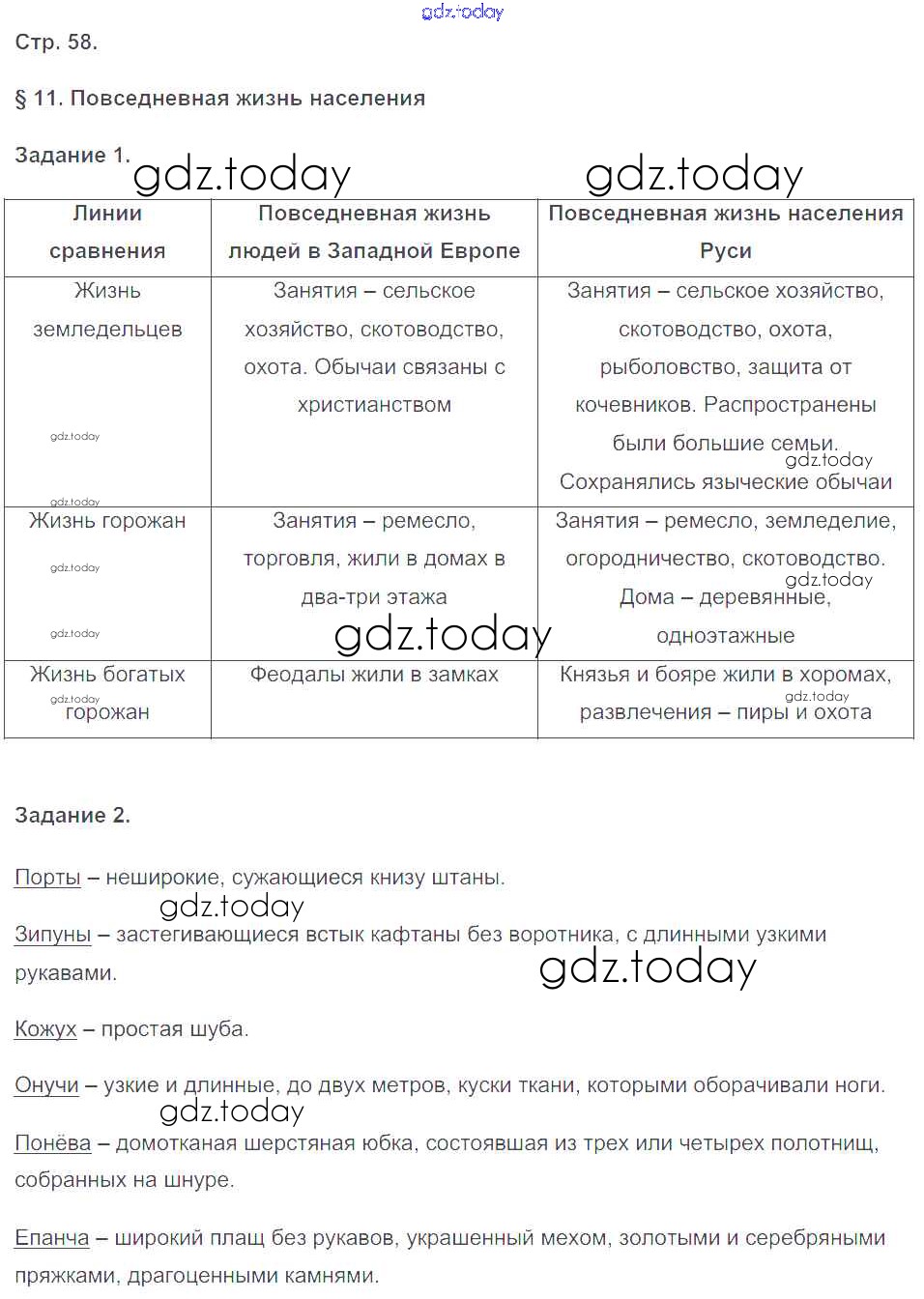 На страницах сайта gdz.today вы найдете учебный и вспомогательный материал, направленный на улучшения знаний школьной программы. ГДЗ - онлайн мир знаний Решение к части 1. Страницы 58 Рабочей тетради по Истории России для 6 класса Чернова Экзамен УМК 2017