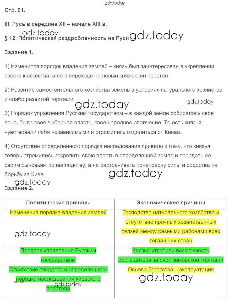 На страницах сайта gdz.today вы найдете учебный и вспомогательный материал, направленный на улучшения знаний школьной программы. ГДЗ - онлайн мир знаний Решение к части 1. Страницы 61 Рабочей тетради по Истории России для 6 класса Чернова Экзамен УМК 2017