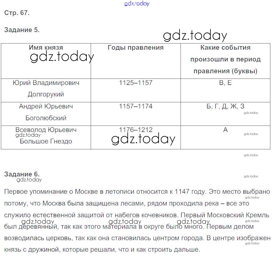 На страницах сайта gdz.today вы найдете учебный и вспомогательный материал, направленный на улучшения знаний школьной программы. ГДЗ - онлайн мир знаний Решение к части 1. Страницы 67 Рабочей тетради по Истории России для 6 класса Чернова Экзамен УМК 2017