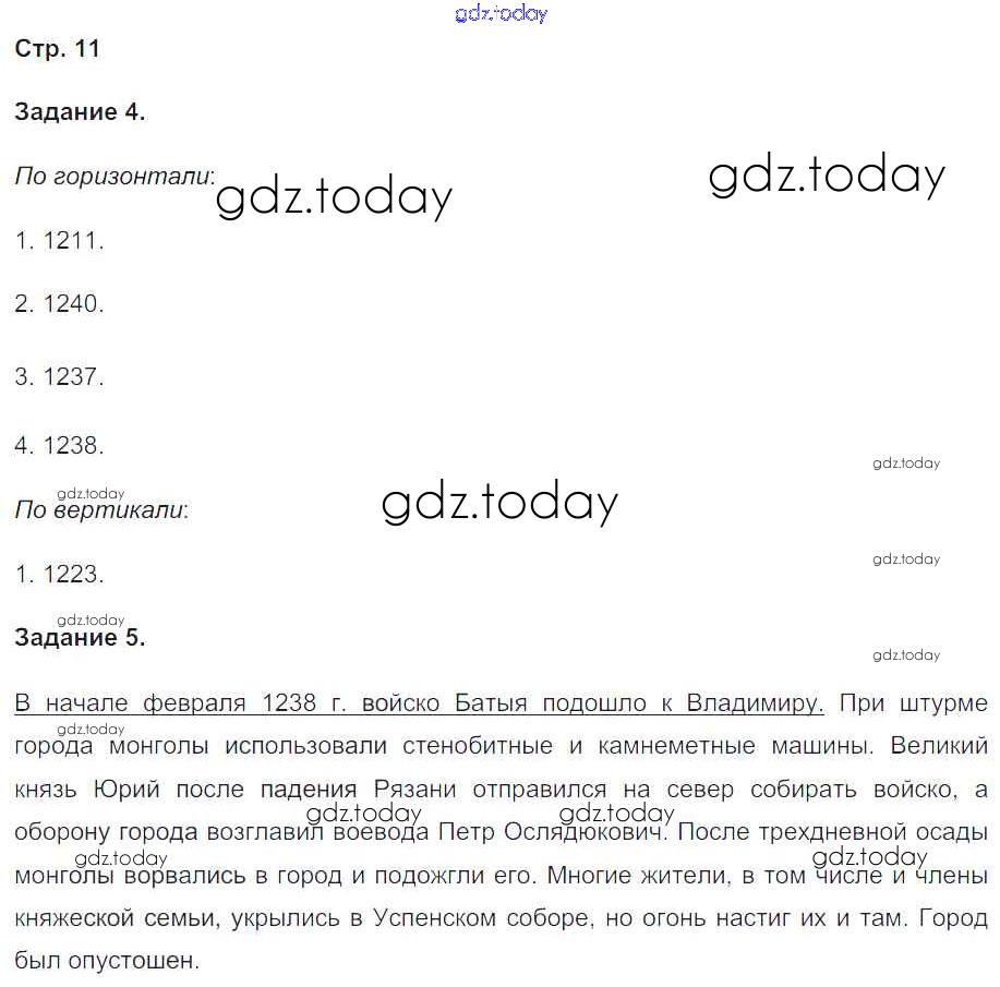 На страницах сайта gdz.today вы найдете учебный и вспомогательный материал, направленный на улучшения знаний школьной программы. ГДЗ - онлайн мир знаний Решение к части 2. Страницы 11 Рабочей тетради по Истории России для 6 класса Чернова Экзамен УМК 2017