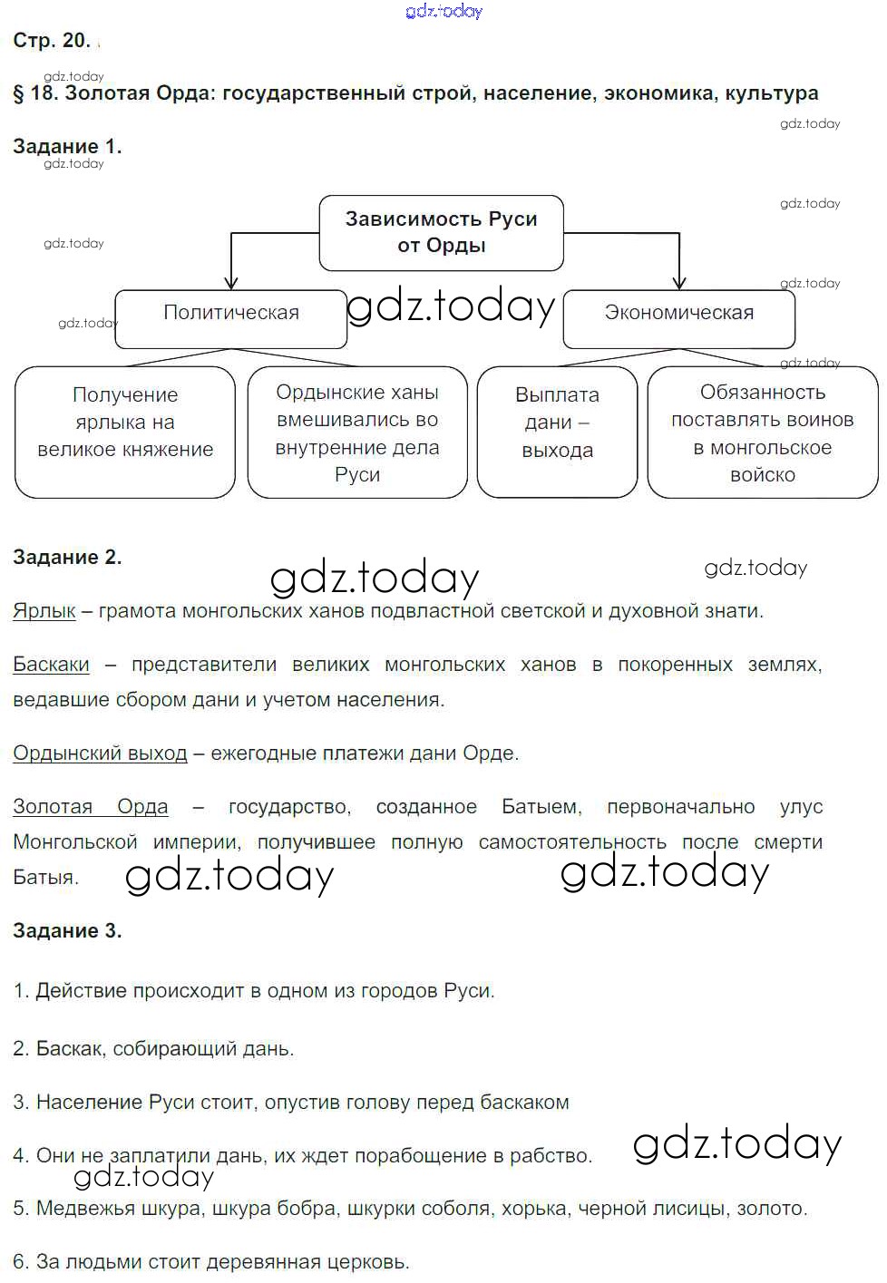 На страницах сайта gdz.today вы найдете учебный и вспомогательный материал, направленный на улучшения знаний школьной программы. ГДЗ - онлайн мир знаний Решение к части 2. Страницы 20 Рабочей тетради по Истории России для 6 класса Чернова Экзамен УМК 2017