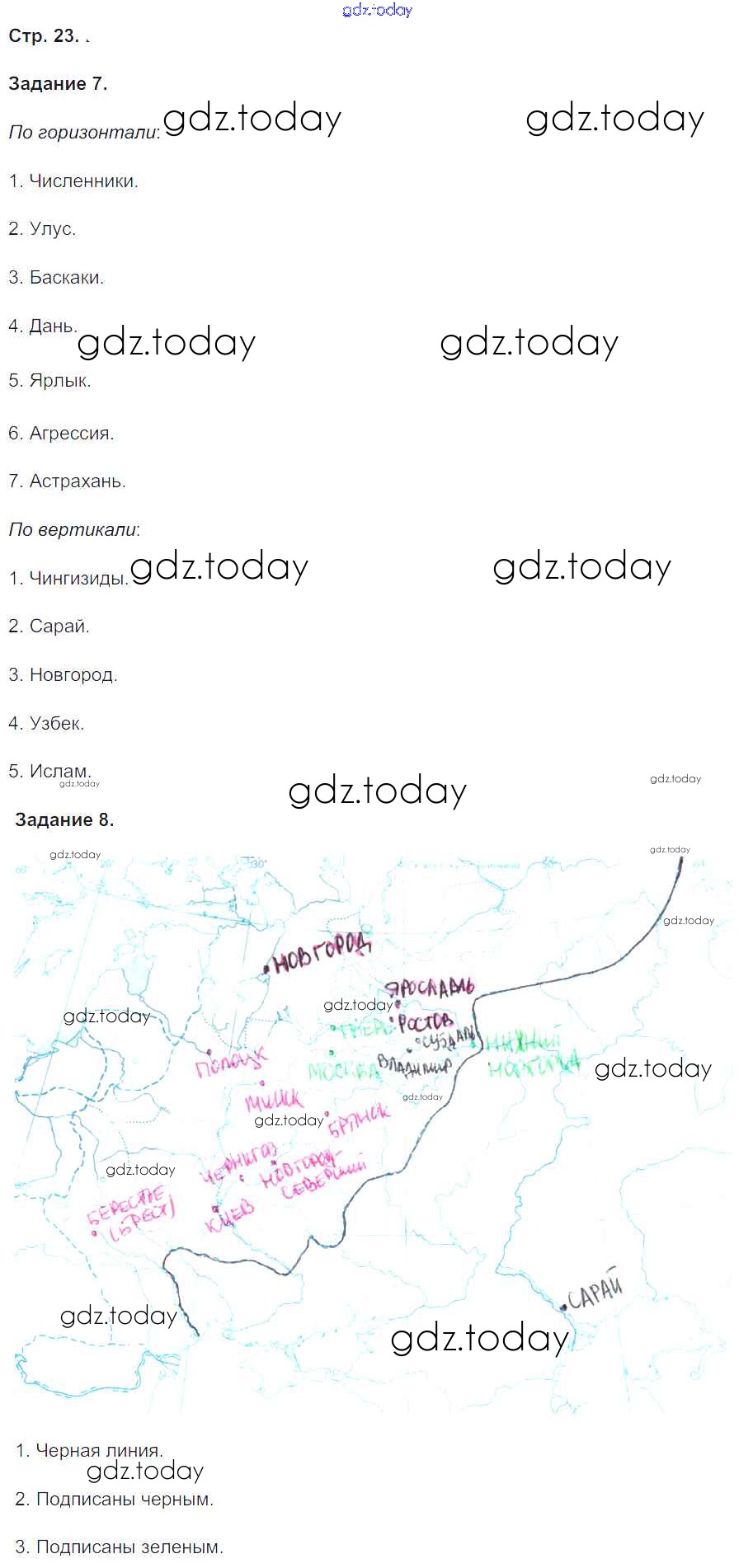 На страницах сайта gdz.today вы найдете учебный и вспомогательный материал, направленный на улучшения знаний школьной программы. ГДЗ - онлайн мир знаний Решение к части 2. Страницы 23 Рабочей тетради по Истории России для 6 класса Чернова Экзамен УМК 2017