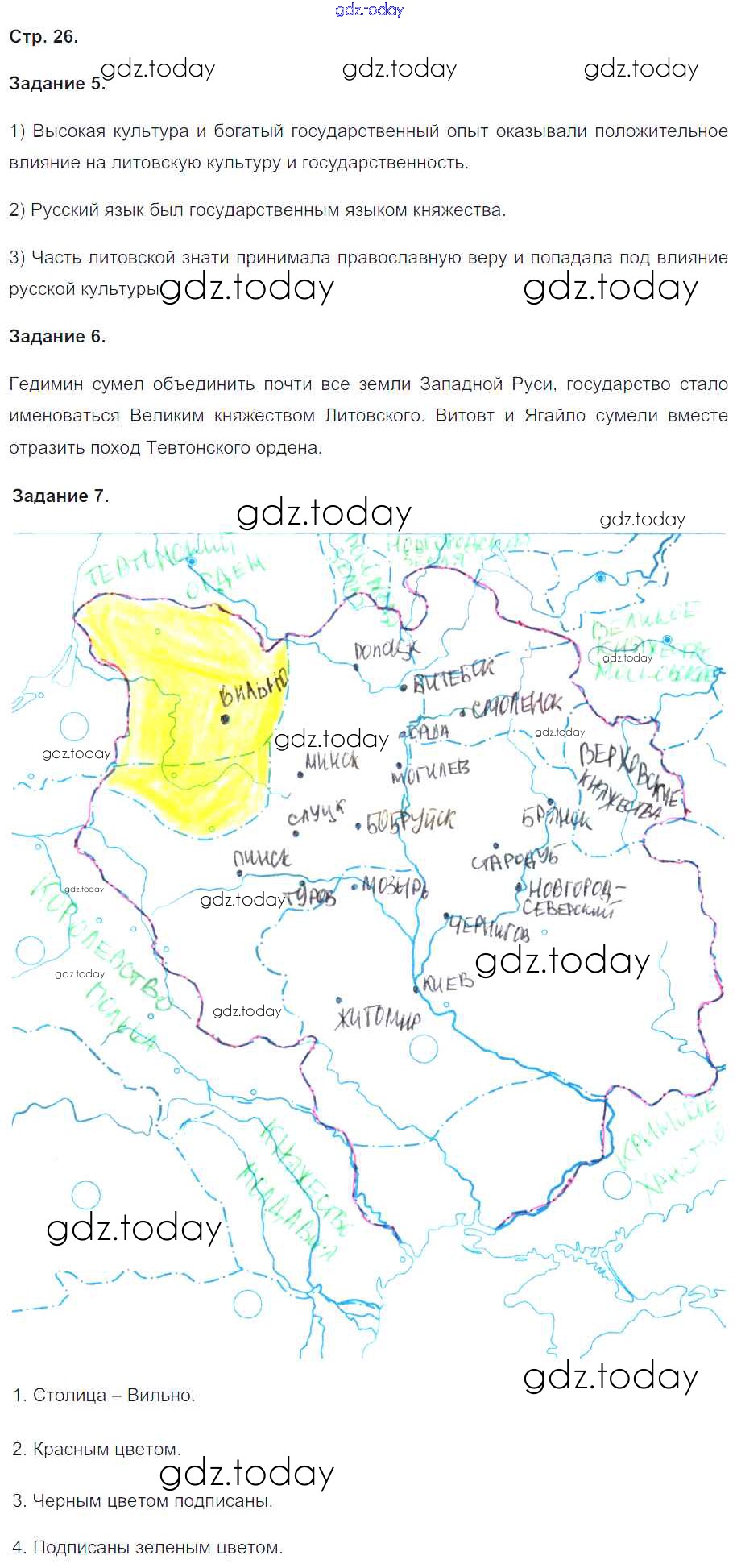 На страницах сайта gdz.today вы найдете учебный и вспомогательный материал, направленный на улучшения знаний школьной программы. ГДЗ - онлайн мир знаний Решение к части 2. Страницы 26 Рабочей тетради по Истории России для 6 класса Чернова Экзамен УМК 2017