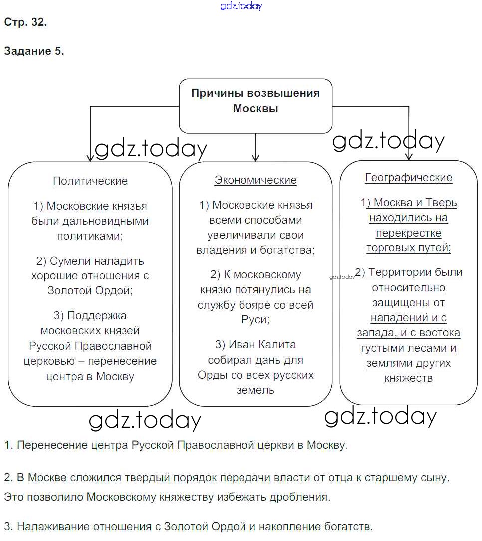 На страницах сайта gdz.today вы найдете учебный и вспомогательный материал, направленный на улучшения знаний школьной программы. ГДЗ - онлайн мир знаний Решение к части 2. Страницы 32 Рабочей тетради по Истории России для 6 класса Чернова Экзамен УМК 2017