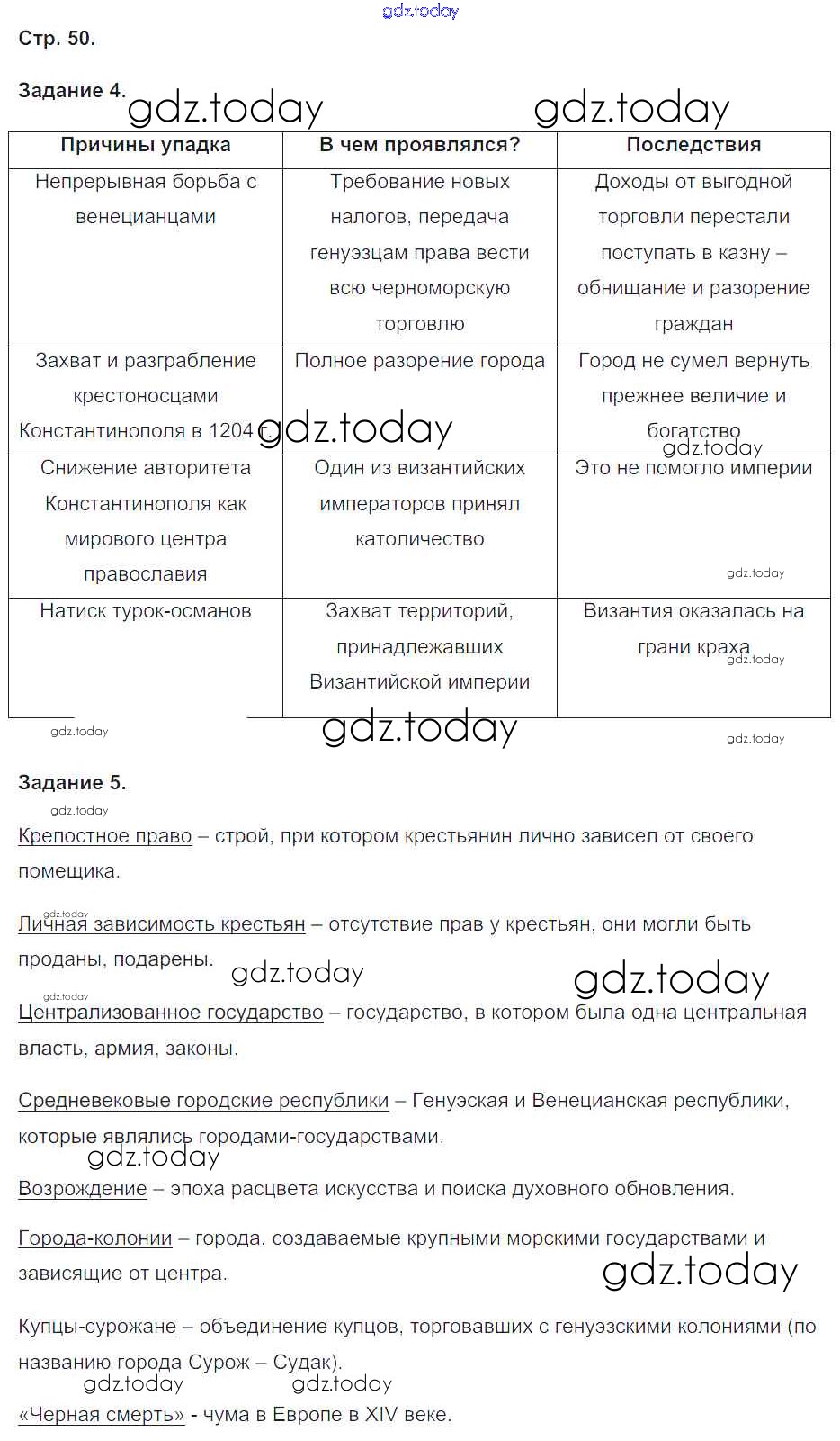 На страницах сайта gdz.today вы найдете учебный и вспомогательный материал, направленный на улучшения знаний школьной программы. ГДЗ - онлайн мир знаний Решение к части 2. Страницы 50 Рабочей тетради по Истории России для 6 класса Чернова Экзамен УМК 2017