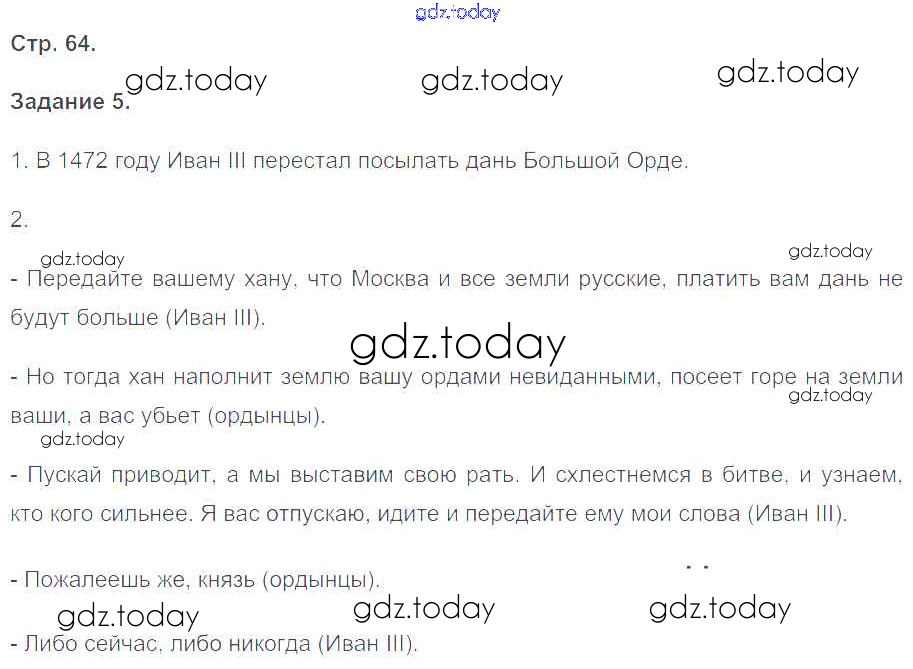 На страницах сайта gdz.today вы найдете учебный и вспомогательный материал, направленный на улучшения знаний школьной программы. ГДЗ - онлайн мир знаний Решение к части 2. Страницы 64 Рабочей тетради по Истории России для 6 класса Чернова Экзамен УМК 2017