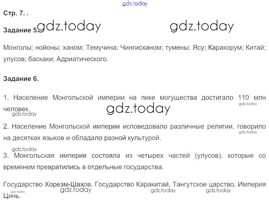 На страницах сайта gdz.today вы найдете учебный и вспомогательный материал, направленный на улучшения знаний школьной программы. ГДЗ - онлайн мир знаний Решение к части 2. Страницы 7 Рабочей тетради по Истории России для 6 класса Чернова Экзамен УМК 2017