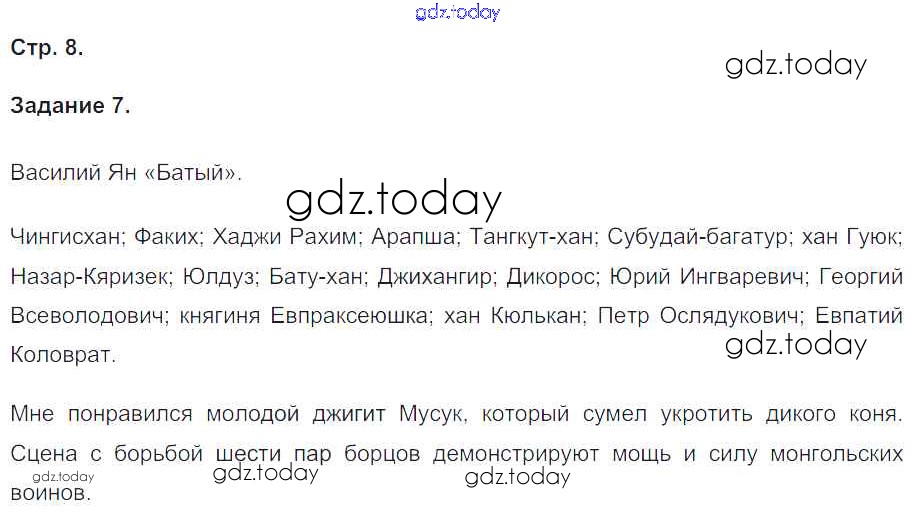 На страницах сайта gdz.today вы найдете учебный и вспомогательный материал, направленный на улучшения знаний школьной программы. ГДЗ - онлайн мир знаний Решение к части 2. Страницы 8 Рабочей тетради по Истории России для 6 класса Чернова Экзамен УМК 2017
