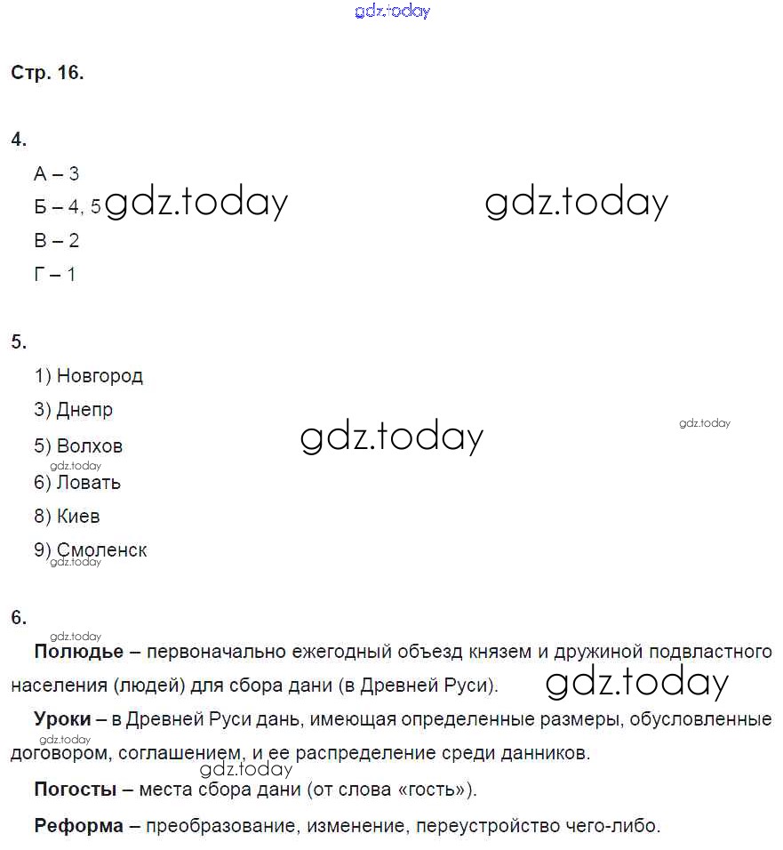 На страницах сайта gdz.today вы найдете учебный и вспомогательный материал, направленный на улучшения знаний школьной программы. ГДЗ - онлайн мир знаний Страницы (решение) 16 Рабочей тетради по Истории России для 6 класса Клоков, Симонова Дрофа Вертикаль 2018