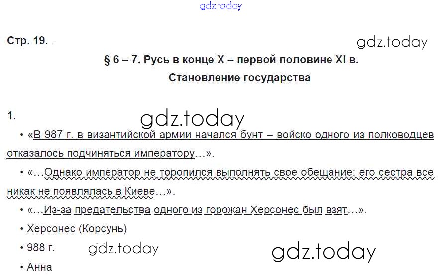 На страницах сайта gdz.today вы найдете учебный и вспомогательный материал, направленный на улучшения знаний школьной программы. ГДЗ - онлайн мир знаний Страницы (решение) 19 Рабочей тетради по Истории России для 6 класса Клоков, Симонова Дрофа Вертикаль 2018