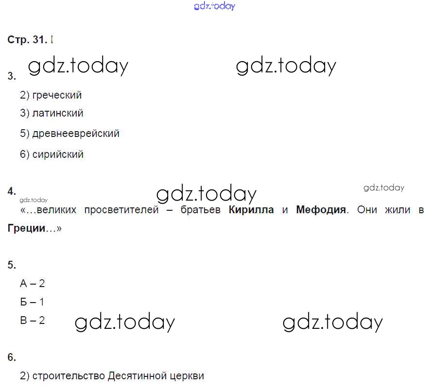 На страницах сайта gdz.today вы найдете учебный и вспомогательный материал, направленный на улучшения знаний школьной программы. ГДЗ - онлайн мир знаний Страницы (решение) 31 Рабочей тетради по Истории России для 6 класса Клоков, Симонова Дрофа Вертикаль 2018