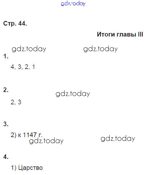 На страницах сайта gdz.today вы найдете учебный и вспомогательный материал, направленный на улучшения знаний школьной программы. ГДЗ - онлайн мир знаний Страницы (решение) 44 Рабочей тетради по Истории России для 6 класса Клоков, Симонова Дрофа Вертикаль 2018
