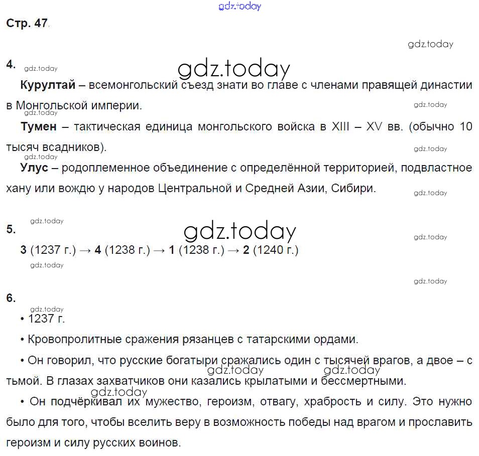 На страницах сайта gdz.today вы найдете учебный и вспомогательный материал, направленный на улучшения знаний школьной программы. ГДЗ - онлайн мир знаний Страницы (решение) 47 Рабочей тетради по Истории России для 6 класса Клоков, Симонова Дрофа Вертикаль 2018