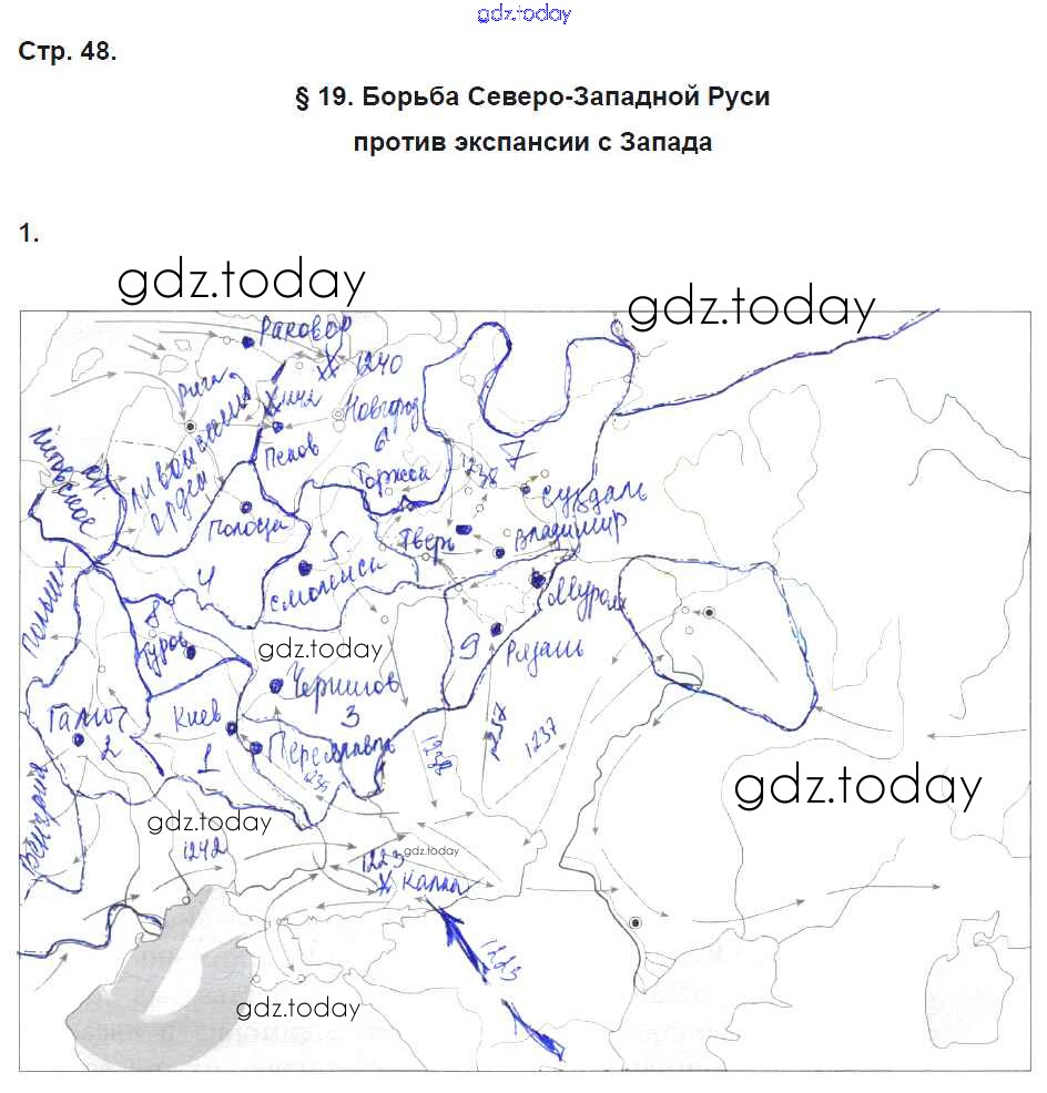 На страницах сайта gdz.today вы найдете учебный и вспомогательный материал, направленный на улучшения знаний школьной программы. ГДЗ - онлайн мир знаний Страницы (решение) 48 Рабочей тетради по Истории России для 6 класса Клоков, Симонова Дрофа Вертикаль 2018