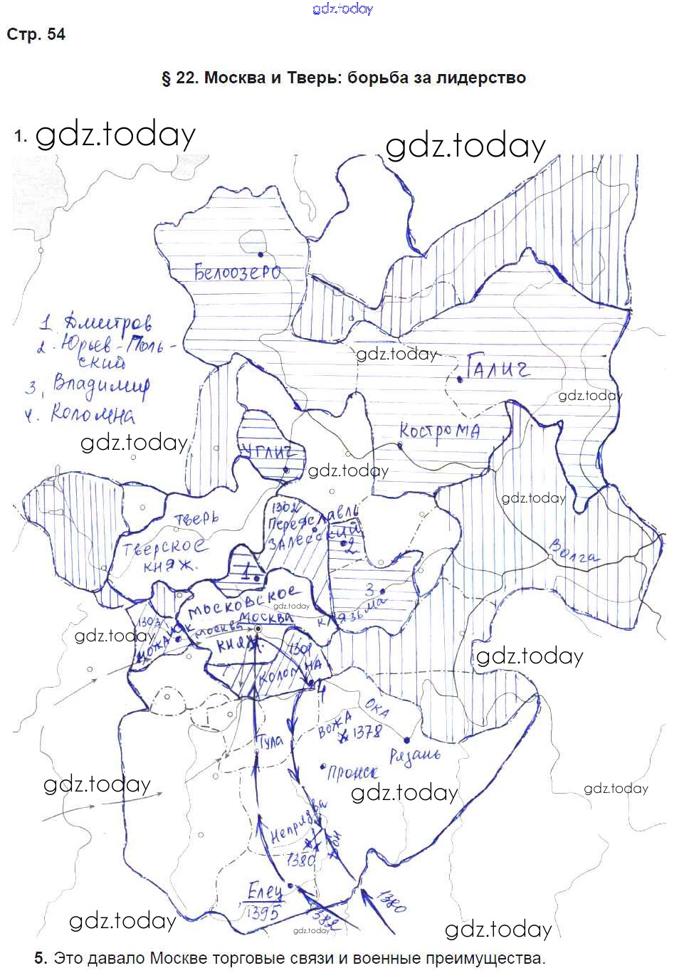 На страницах сайта gdz.today вы найдете учебный и вспомогательный материал, направленный на улучшения знаний школьной программы. ГДЗ - онлайн мир знаний Страницы (решение) 54 Рабочей тетради по Истории России для 6 класса Клоков, Симонова Дрофа Вертикаль 2018