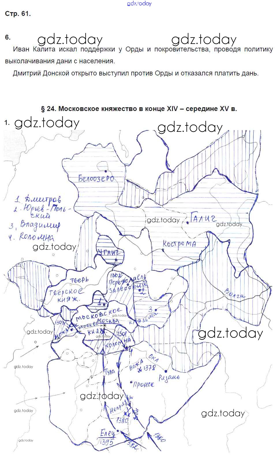 На страницах сайта gdz.today вы найдете учебный и вспомогательный материал, направленный на улучшения знаний школьной программы. ГДЗ - онлайн мир знаний Страницы (решение) 61 Рабочей тетради по Истории России для 6 класса Клоков, Симонова Дрофа Вертикаль 2018