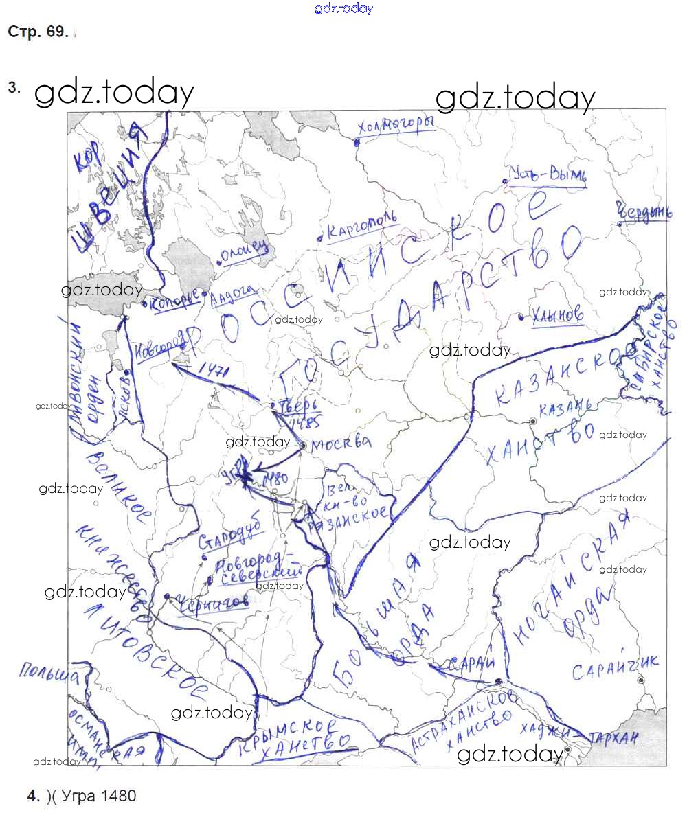 На страницах сайта gdz.today вы найдете учебный и вспомогательный материал, направленный на улучшения знаний школьной программы. ГДЗ - онлайн мир знаний Страницы (решение) 69 Рабочей тетради по Истории России для 6 класса Клоков, Симонова Дрофа Вертикаль 2018