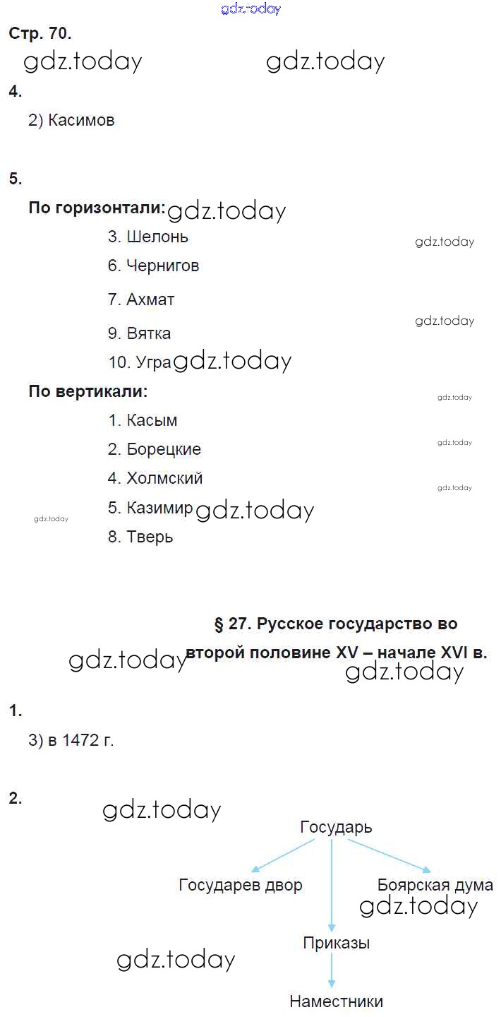 На страницах сайта gdz.today вы найдете учебный и вспомогательный материал, направленный на улучшения знаний школьной программы. ГДЗ - онлайн мир знаний Страницы (решение) 70 Рабочей тетради по Истории России для 6 класса Клоков, Симонова Дрофа Вертикаль 2018