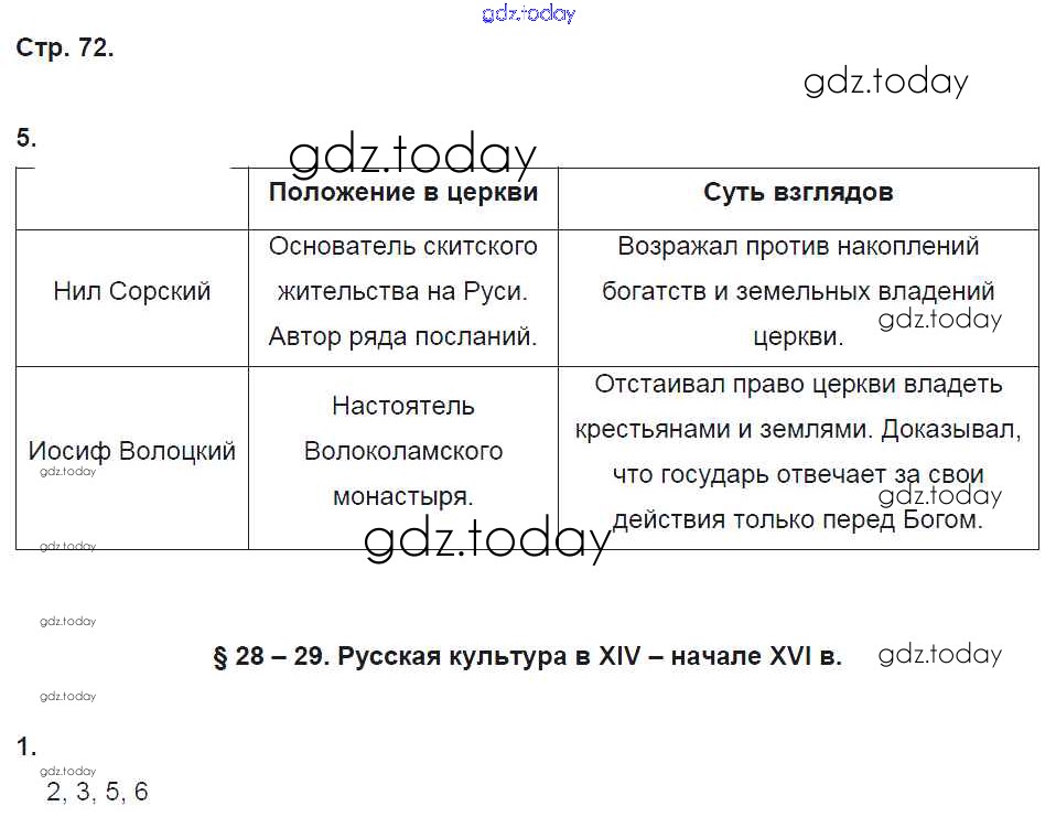 На страницах сайта gdz.today вы найдете учебный и вспомогательный материал, направленный на улучшения знаний школьной программы. ГДЗ - онлайн мир знаний Страницы (решение) 72 Рабочей тетради по Истории России для 6 класса Клоков, Симонова Дрофа Вертикаль 2018