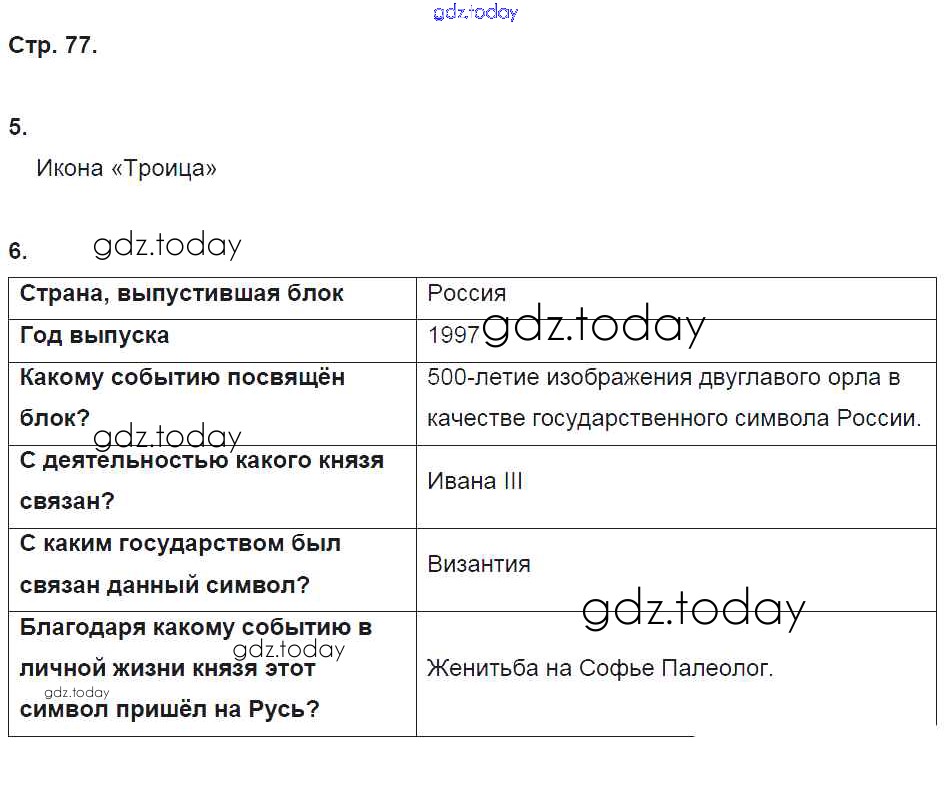 На страницах сайта gdz.today вы найдете учебный и вспомогательный материал, направленный на улучшения знаний школьной программы. ГДЗ - онлайн мир знаний Страницы (решение) 77 Рабочей тетради по Истории России для 6 класса Клоков, Симонова Дрофа Вертикаль 2018