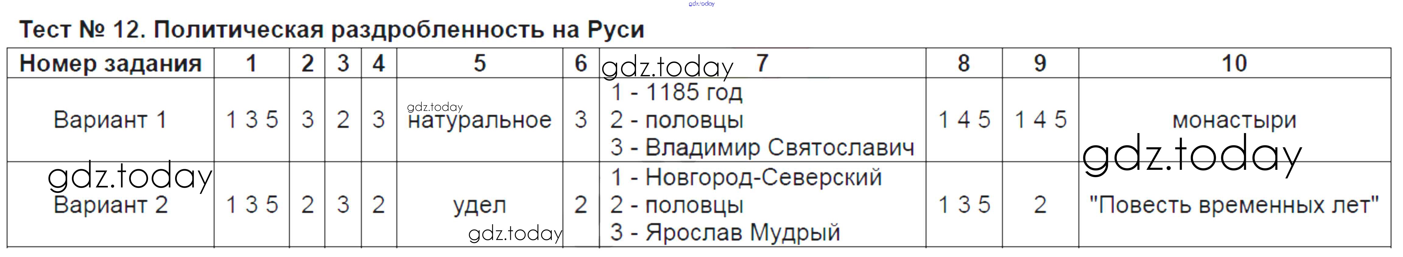 На страницах сайта gdz.today вы найдете учебный и вспомогательный материал, направленный на улучшения знаний школьной программы. ГДЗ - онлайн мир знаний Решение к тестам Тест №12. Политическая раздробленность на Руси Тестам по Истории России для 6 класса Воробьёва Экзамен УМК 2017