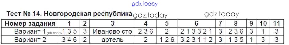 На страницах сайта gdz.today вы найдете учебный и вспомогательный материал, направленный на улучшения знаний школьной программы. ГДЗ - онлайн мир знаний Решение к тестам Тест №14. Новгородская республика Тестам по Истории России для 6 класса Воробьёва Экзамен УМК 2017