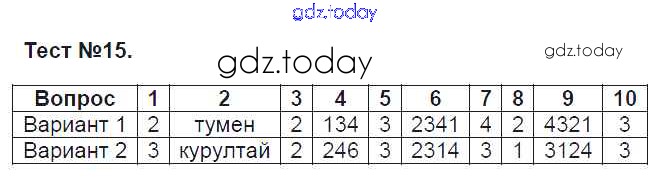 Ответы к Решение к тестам Тест №15 Тестам по Истории России для 6 класса Воробьёва Экзамен УМК 2017