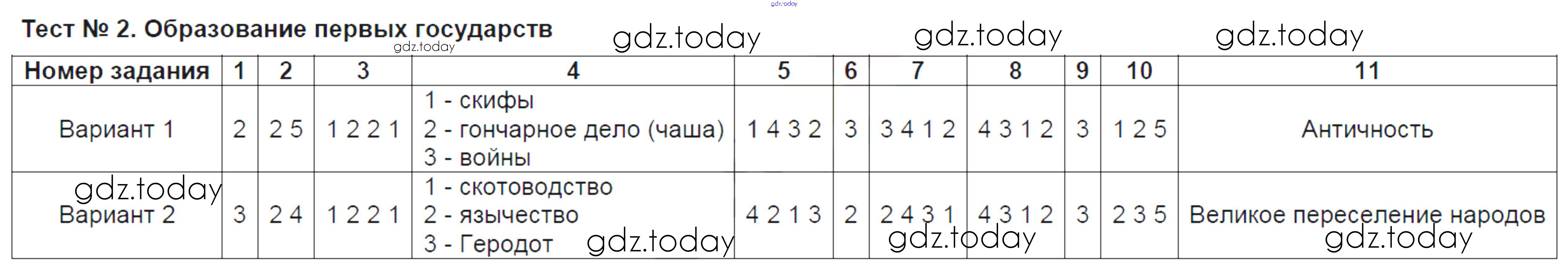 На страницах сайта gdz.today вы найдете учебный и вспомогательный материал, направленный на улучшения знаний школьной программы. ГДЗ - онлайн мир знаний Решение к тестам Тест №2. Образование первых государств Тестам по Истории России для 6 класса Воробьёва Экзамен УМК 2017