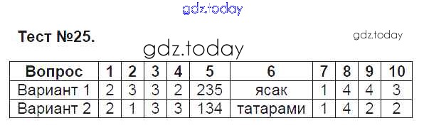 Ответы к Решение к тестам Тест №25 Тестам по Истории России для 6 класса Воробьёва Экзамен УМК 2017