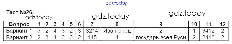 Ответы к Решение к тестам Тест №26 Тестам по Истории России для 6 класса Воробьёва Экзамен УМК 2017