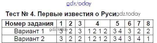 На страницах сайта gdz.today вы найдете учебный и вспомогательный материал, направленный на улучшения знаний школьной программы. ГДЗ - онлайн мир знаний Решение к тестам Тест №4. Первые известия о Руси Тестам по Истории России для 6 класса Воробьёва Экзамен УМК 2017