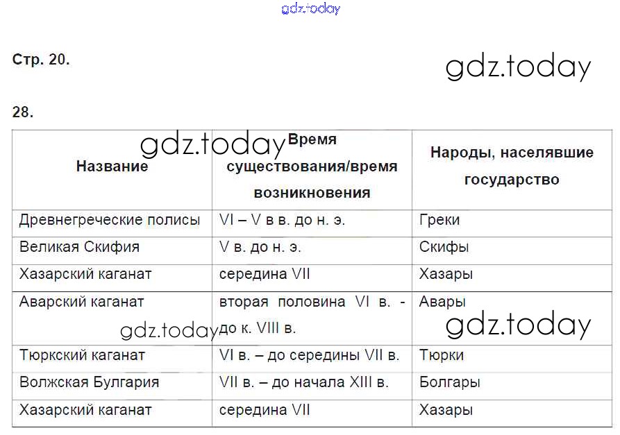 На страницах сайта gdz.today вы найдете учебный и вспомогательный материал, направленный на улучшения знаний школьной программы. ГДЗ - онлайн мир знаний Решение. Раздел 1. Древние жители нашей Родины стр. 20 Рабочей тетради по Истории России для 6 класса Кочегаров Русское слово Инновационная школа 2017
