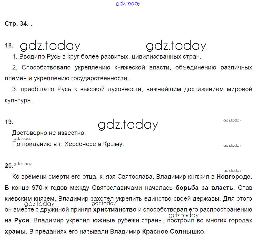 На страницах сайта gdz.today вы найдете учебный и вспомогательный материал, направленный на улучшения знаний школьной программы. ГДЗ - онлайн мир знаний Решение. Раздел 2. Русь в IX-XII веках стр. 34 Рабочей тетради по Истории России для 6 класса Кочегаров Русское слово Инновационная школа 2017