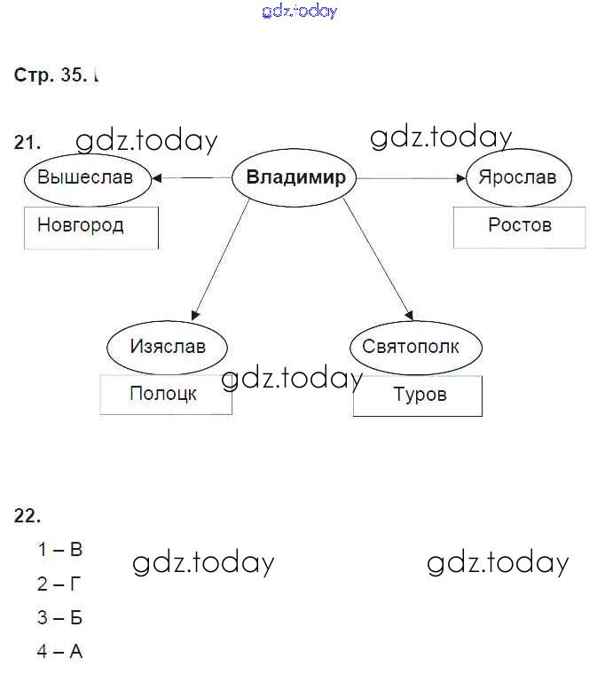 На страницах сайта gdz.today вы найдете учебный и вспомогательный материал, направленный на улучшения знаний школьной программы. ГДЗ - онлайн мир знаний Решение. Раздел 2. Русь в IX-XII веках стр. 35 Рабочей тетради по Истории России для 6 класса Кочегаров Русское слово Инновационная школа 2017