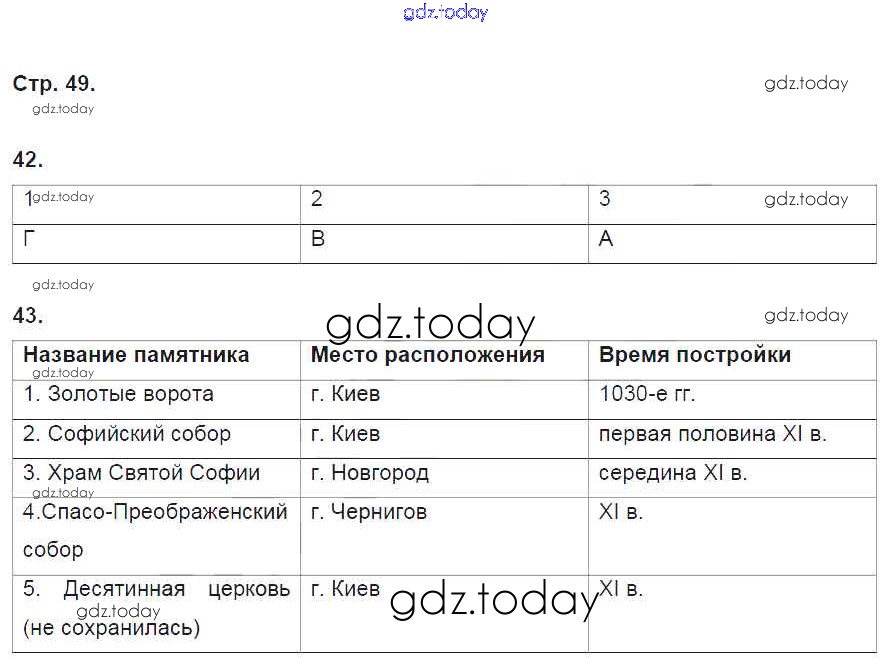 На страницах сайта gdz.today вы найдете учебный и вспомогательный материал, направленный на улучшения знаний школьной программы. ГДЗ - онлайн мир знаний Решение. Раздел 2. Русь в IX-XII веках стр. 49 Рабочей тетради по Истории России для 6 класса Кочегаров Русское слово Инновационная школа 2017