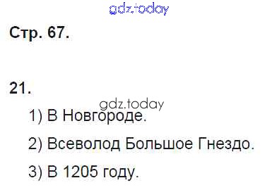 На страницах сайта gdz.today вы найдете учебный и вспомогательный материал, направленный на улучшения знаний школьной программы. ГДЗ - онлайн мир знаний Решение. Раздел 3. Русские земли в XII-начале XV века стр. 67 Рабочей тетради по Истории России для 6 класса Кочегаров Русское слово Инновационная школа 2017