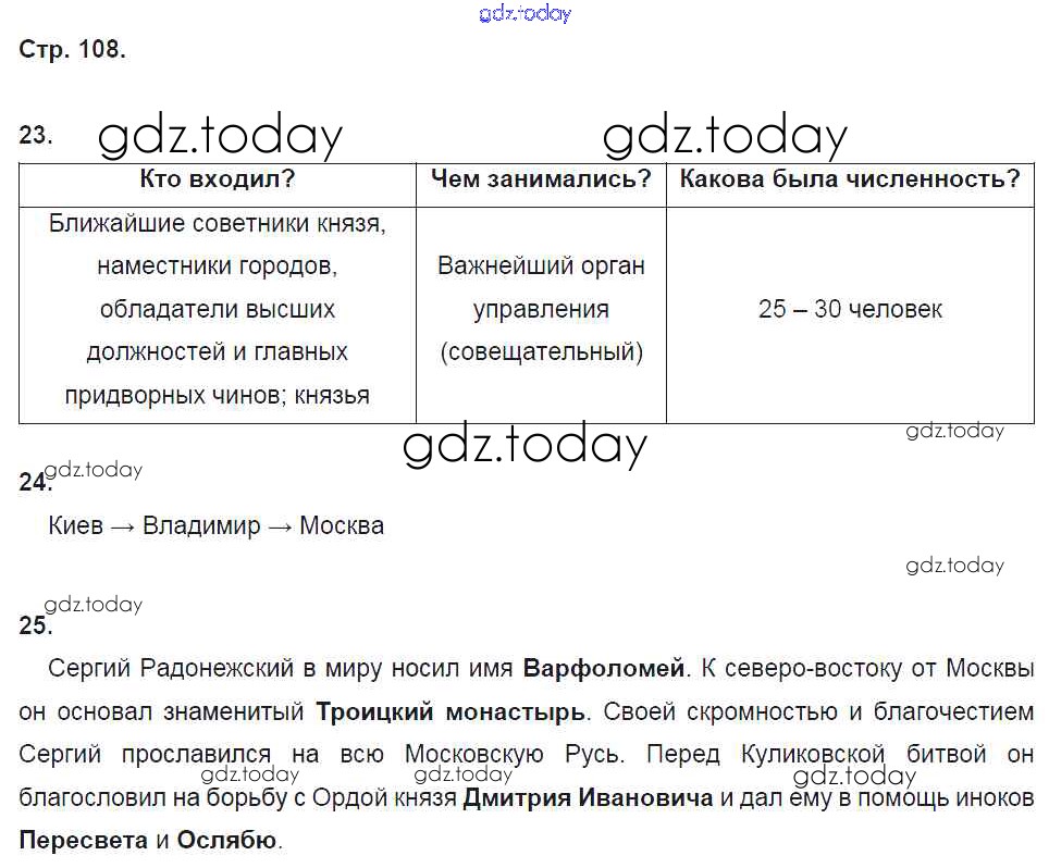 На страницах сайта gdz.today вы найдете учебный и вспомогательный материал, направленный на улучшения знаний школьной программы. ГДЗ - онлайн мир знаний Решение. Раздел 5. Русские земли в середине XIII-XV веке стр. 108 Рабочей тетради по Истории России для 6 класса Кочегаров Русское слово Инновационная школа 2017